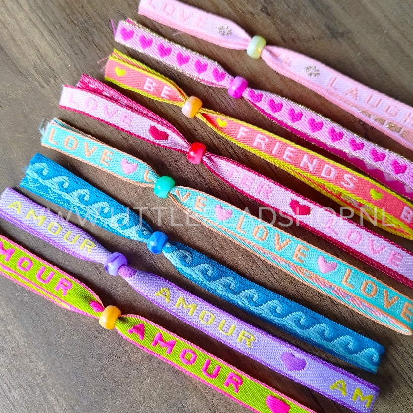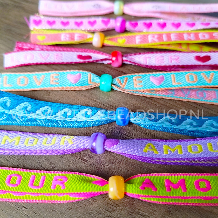 These cute square heart beads are perfect for use as slide beads for ribbon bracelets with text ribbon. The large threading hole allows the ribbon to fit easily through the bead. They're also a great addition to your beaded bracelets! They're available in several colors. Which one do you like best?