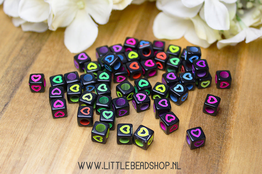 Acrylic Beads Square Heart Neon & Black 7mm, +/- 50 pieces
