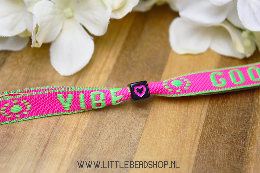 These cute square heart beads are perfect for use as slide beads for ribbon bracelets with text ribbon. The large threading hole allows the ribbon to fit easily through the bead. They're also a great addition to your beaded bracelets! They're available in several colors. Which one do you like best?