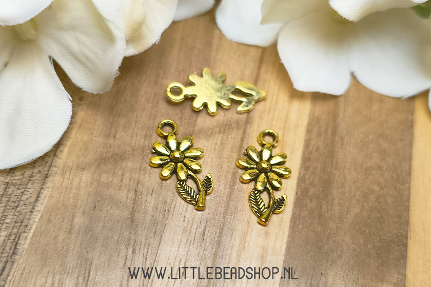 Bedels Bloem op Steeltje goudkleur, per stuk