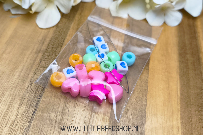 Dit pakket is ook erg leuk om aan iemand te geven die net begint met sieraden maken! Deze armbandjes zijn nog steeds super populair en heel eenvoudig te maken. Super leuk om te geven dus!