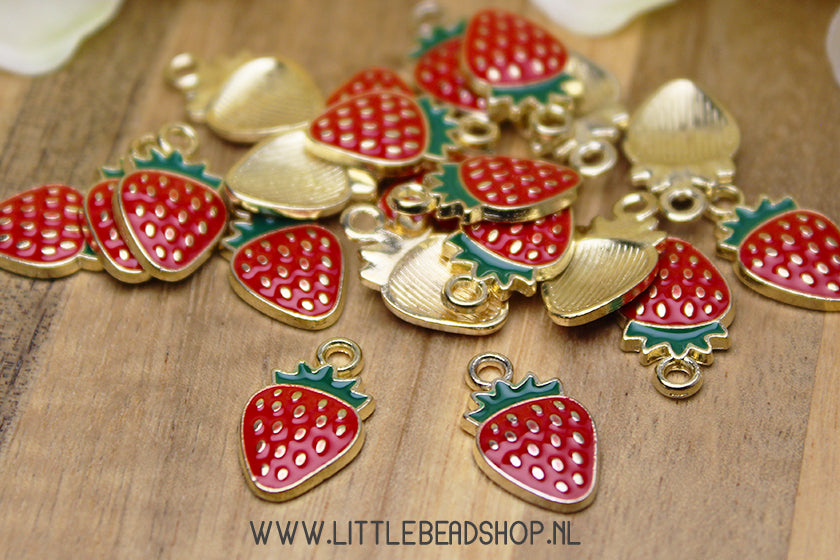 Enamel charms are made of alloy metal with a colored glaze. This glaze is also called enamel. They come in all sorts of fun colors and styles. The charms are usually made of rose gold or gold-colored metal, but you also see them made of silver-colored metal. Enamel charms are a bit more luxurious and ideal for adding to your bracelet or necklace! Or combine two to create super cute earrings!
