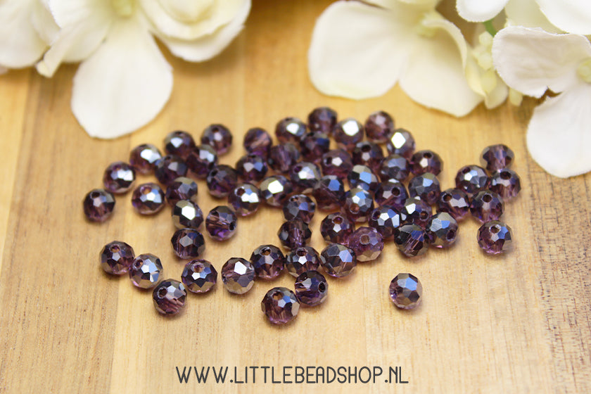 Facet kralen 6mm Dark Purple / Grey, 80 stuks