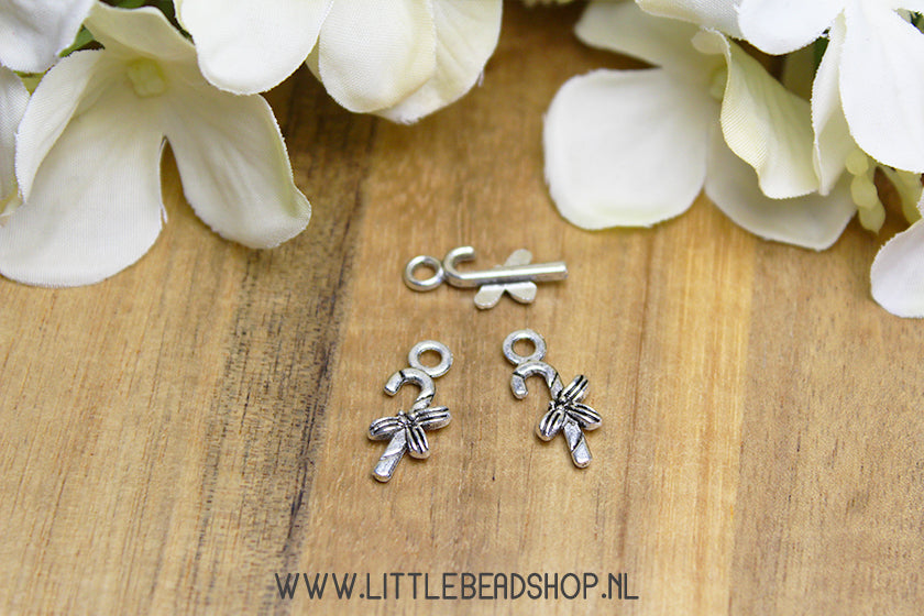 Bedels Candy Cane / Zuurstok zilverkleur, per stuk