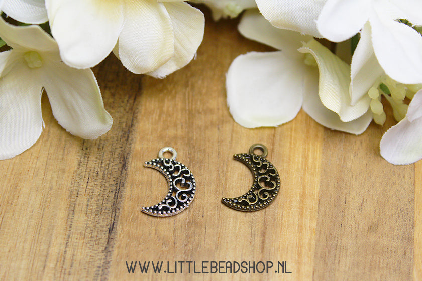 Deze bedels zijn gemaakt van alloy metaal en zijn 18x12mm groot. Het rijggat is 2mm.