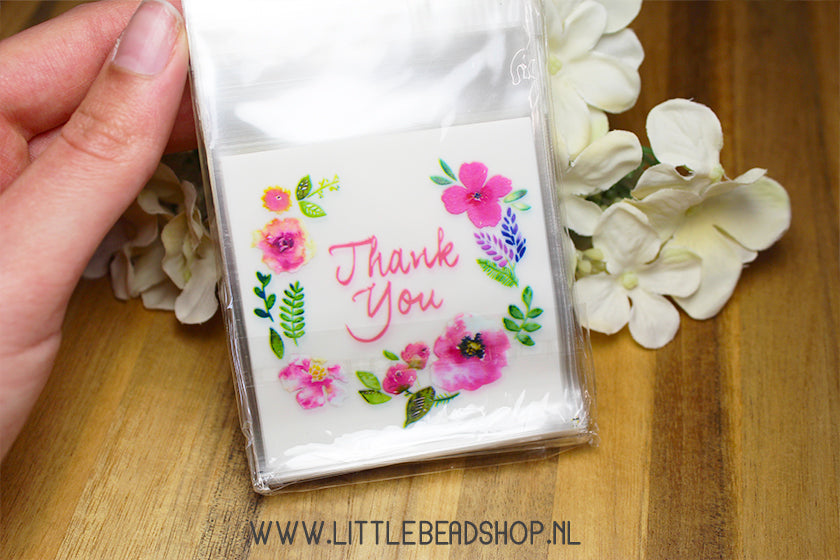 Cadeauzakjes Cellofaan Thank You Flower Pattern, 95-100 stuks