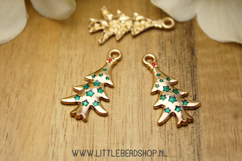 Emaille Bedels Kerstboom met groene Sterren, per stuk