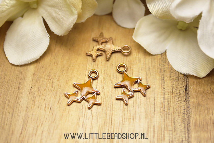Emaille bedels zijn bedels gemaakt van alloy metaal met een laagje gekleurd glazuur. Dat glazuurlaagje wordt ook wel Email of Emaille genoemd. Ze bestaan in allerlei leuke kleuren en soorten. Meestal zijn de bedels van rosé-goudkleurig of goudkleurig metaal gemaakt maar je ziet ze ook wel met zilverkleurig metaal. Emaille bedels zijn net iets luxer en ideaal om te gebruiken in je armbandje of ketting! Of gebruik er 2 om super leuke oorbelletjes mee te maken!