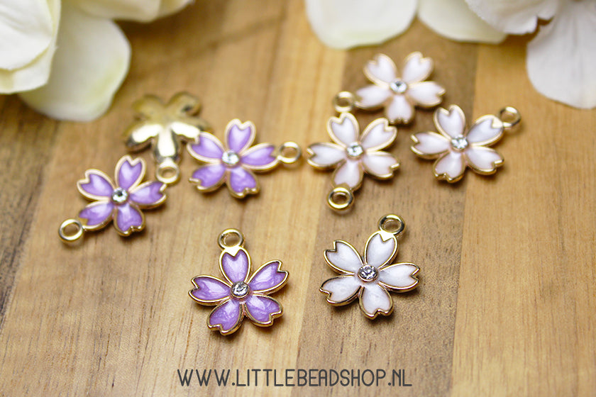 Emaille Bedels Bloem met steentje, per stuk