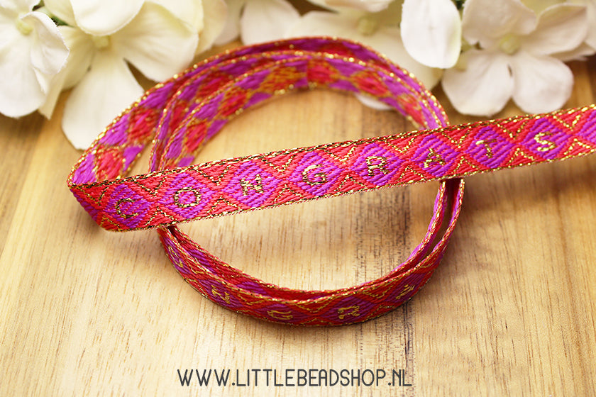Geweven Lint Congrats Donkerroze, Paars & Goud, per meter