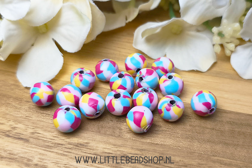 Polymeer Kralen Rond Roze & Blauw & Geel, +/- 15 stuks