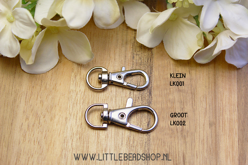 Sleutelhangerhaakjes worden veel gebruikt om mooie eigen gemaakte sleutelhangers mee te maken. Deze sleutelhangers zijn in karabijnhaakjes. Door middel van het hendeltje aan de zijkant kun je de karabijn sleutelhanger open doen en sluiten. Aan de binnenkant zit een klein veertje die tegendruk geeft bij het open doen en hem vanzelf weer goed dichtmaakt bij het sluiten. Ideaal om snel even ergens aan te hangen! En gebruiksvriendelijker dan de originele rond sleutelhangerhaakjes.