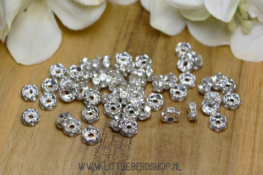 Tussenkralen met steentjes transparant / zilverkleur, +/- 50 stuks